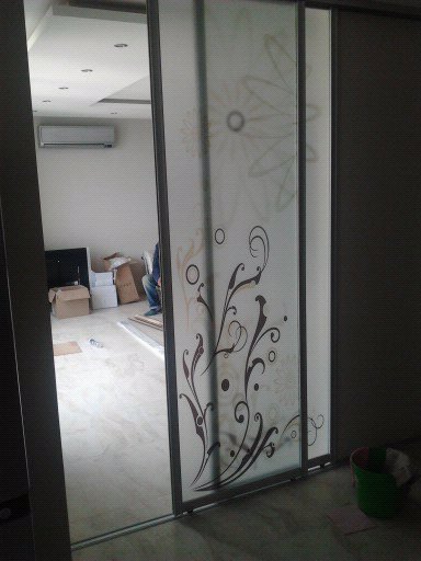 Перегородка между кухне и залом-легкая,ненагружающая.Алюминиевая раздвижная система,секло прозрачное+матировка+двусто...