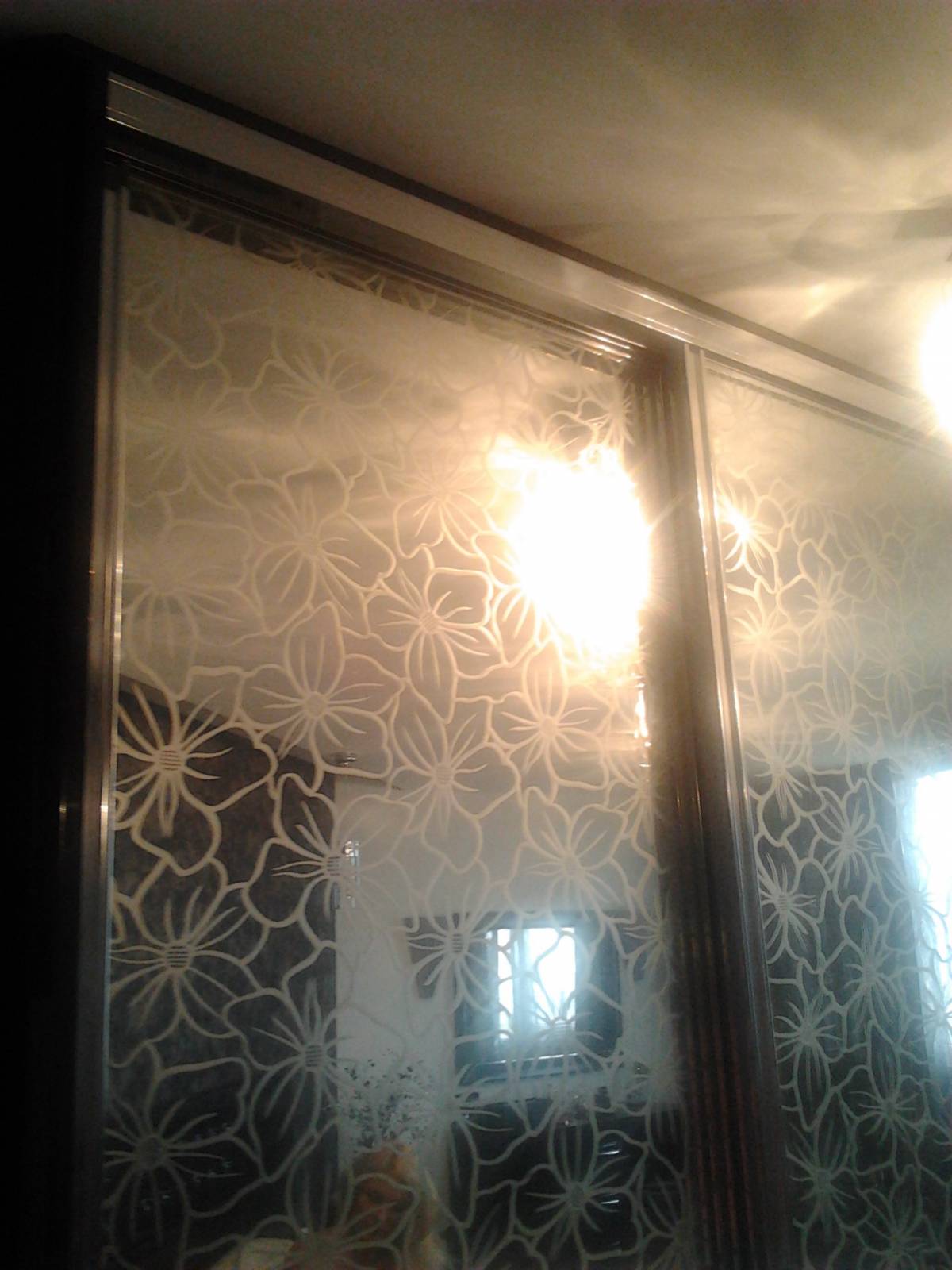 Шкаф-купе из глянцевого МДФ.разддвижная система Италия,хромированная.Фасад-зеркало с рисунком-отображена тюль-полност...