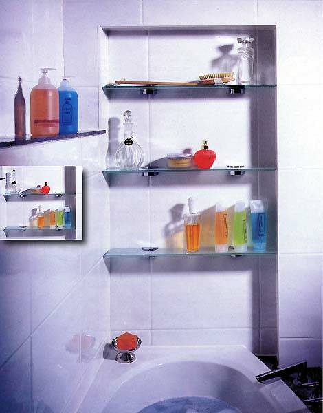 Множество полочек не загромождают пространство, дм\ва умывальника - решение в большой семье.