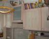 Кухня фасад МДФ-пленка, барная стойка, подвесная полка на цепке.