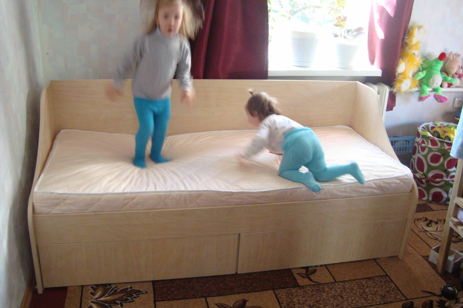 Кровать полуторная,низкая.