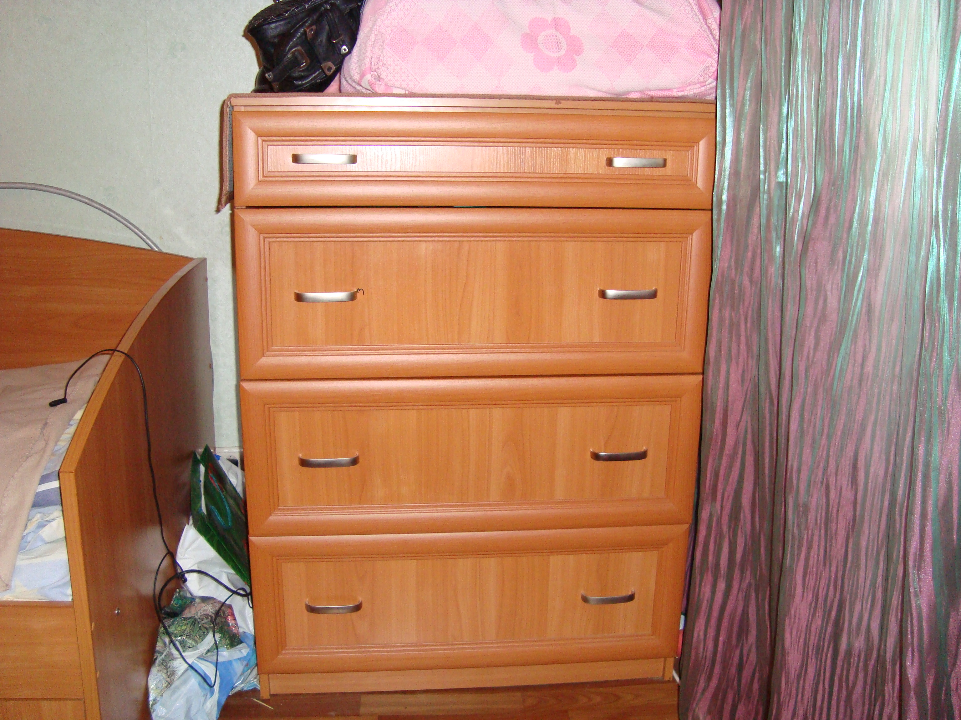 Комод для белья : материал - дсп ламинированное, фасад-мдф рамочный профиль, цвет-вишня, верхний ящик маленький - для...