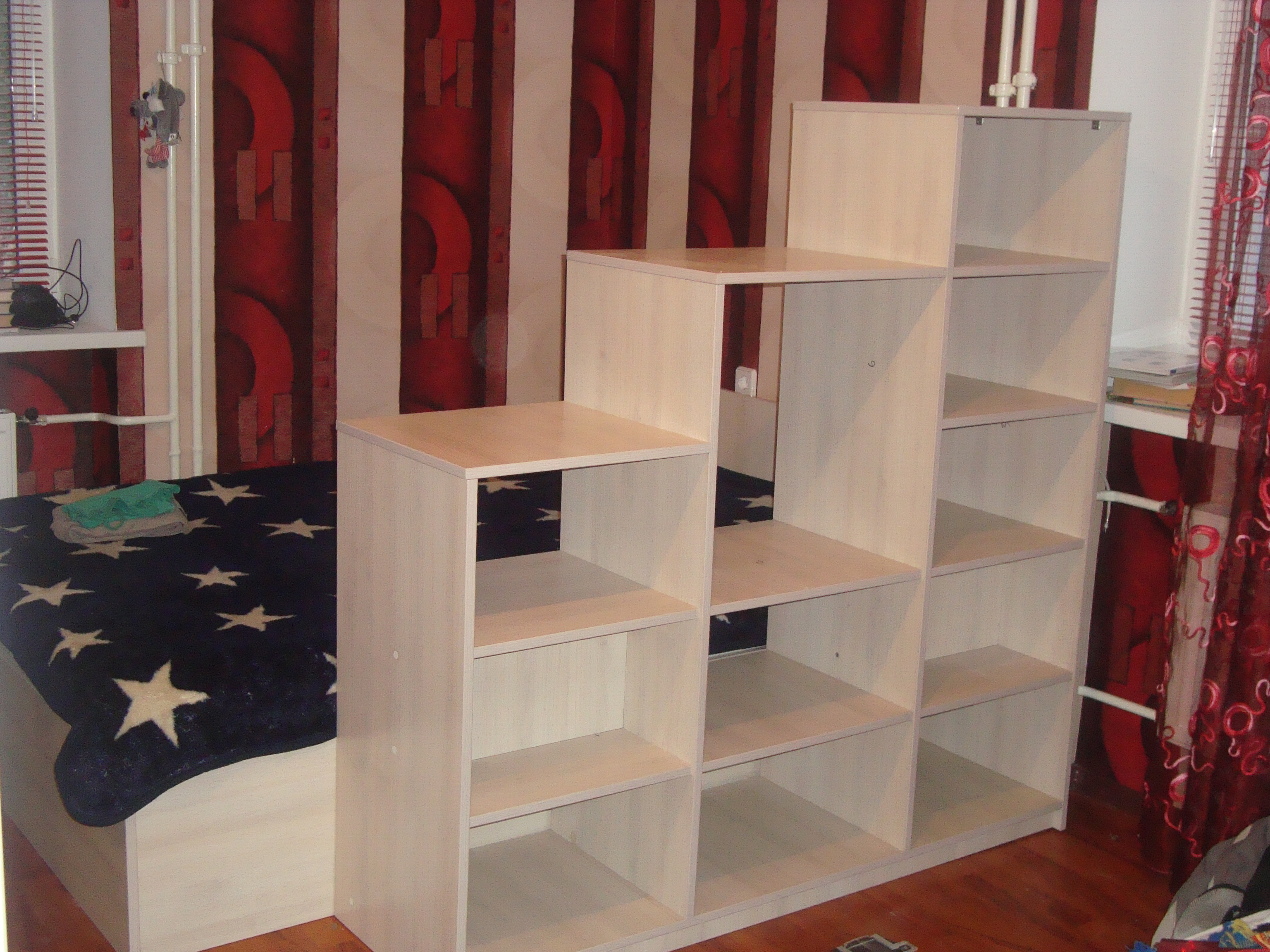 Разделение спальной зоны с местом для гостей. Перегородка для ТВ и различных вещиц - ваз, статуэток, книг, кассет.