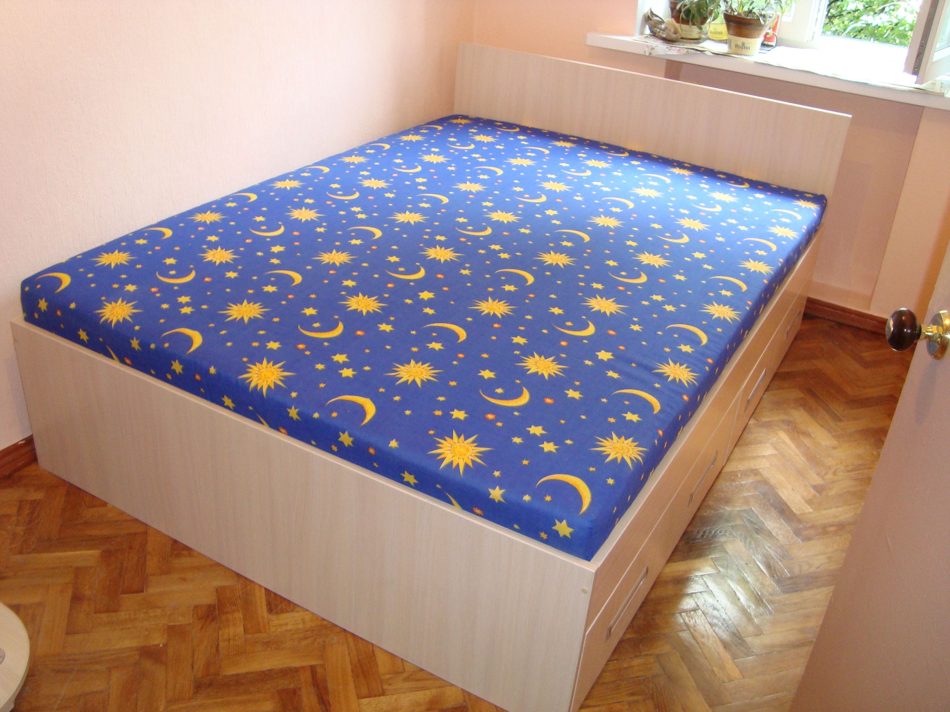 Кровать полуторная(1900*1400) с двумя ящиками для белья.