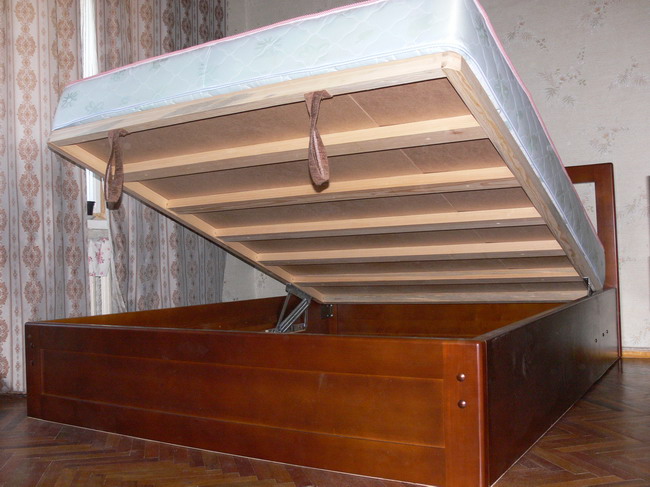 Кровать с нишей для белья на подъёмном механизме, каркас из бруса деревянного,обшивка шпонированная.