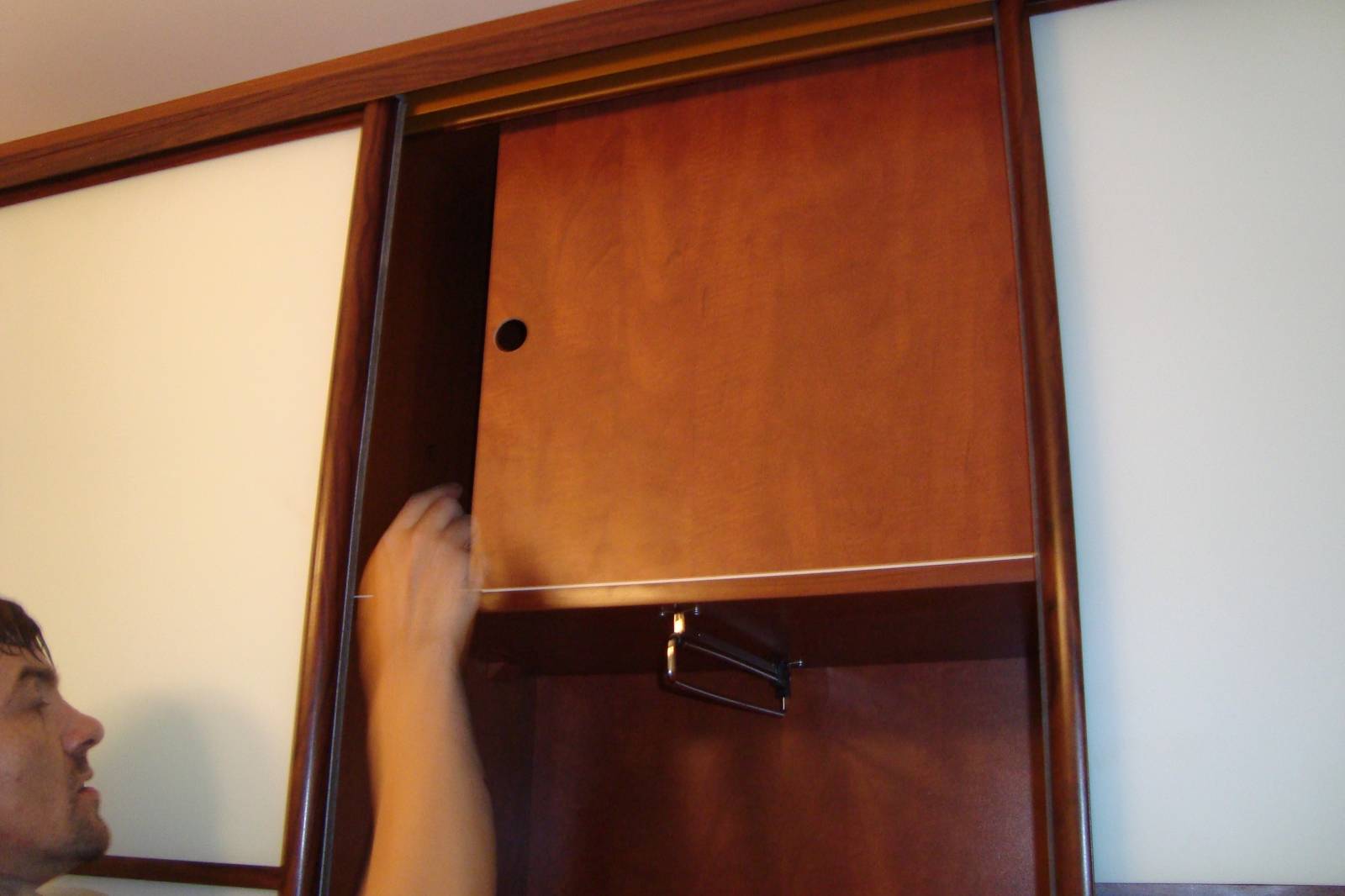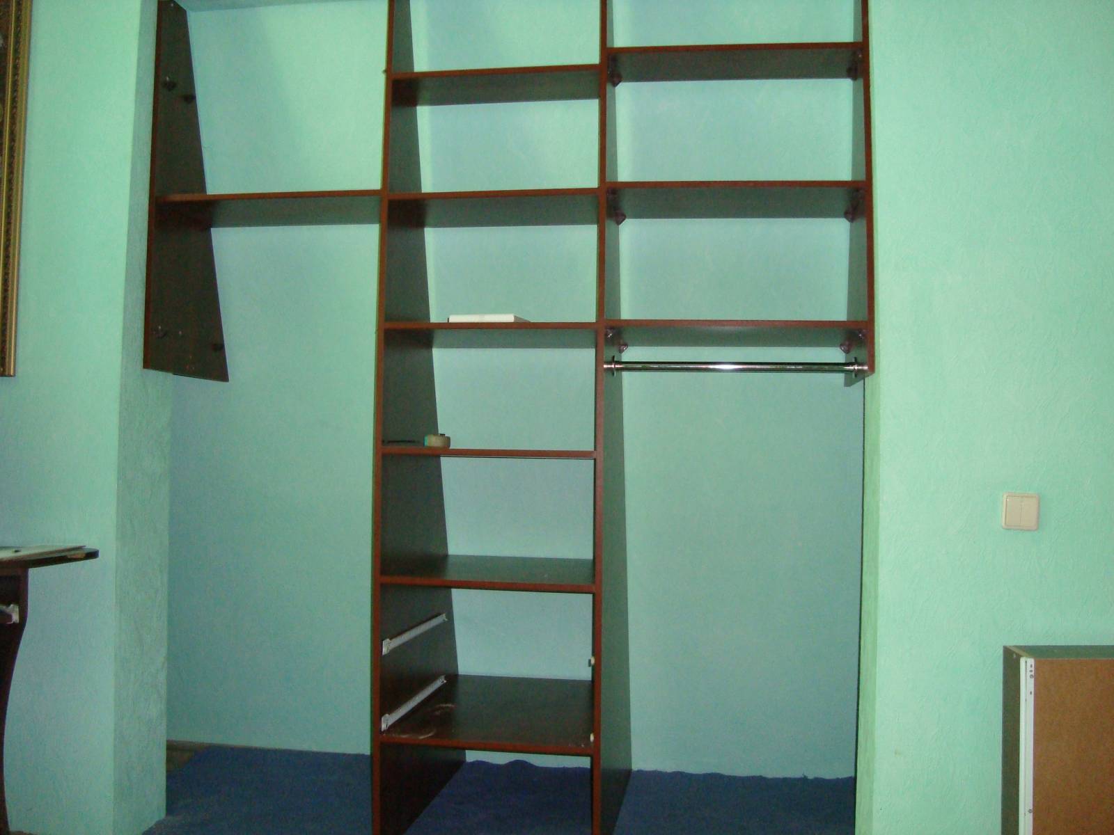 Шкаф-купе в нише- ниша косая внутри,боковые стойки сверху - с низу пространство в глубину