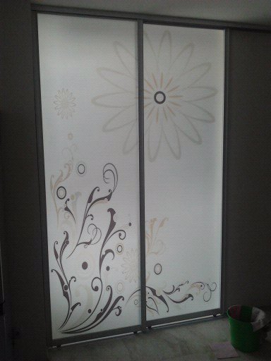 Шкаф-купе из глянцевого МДФ.разддвижная система Италия,хромированная.Фасад-зеркало с рисунком-отображена тюль-полност...