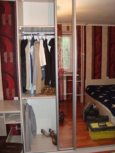 Шкаф-купе в спальне: антресоль, два отделения для вешалок..