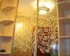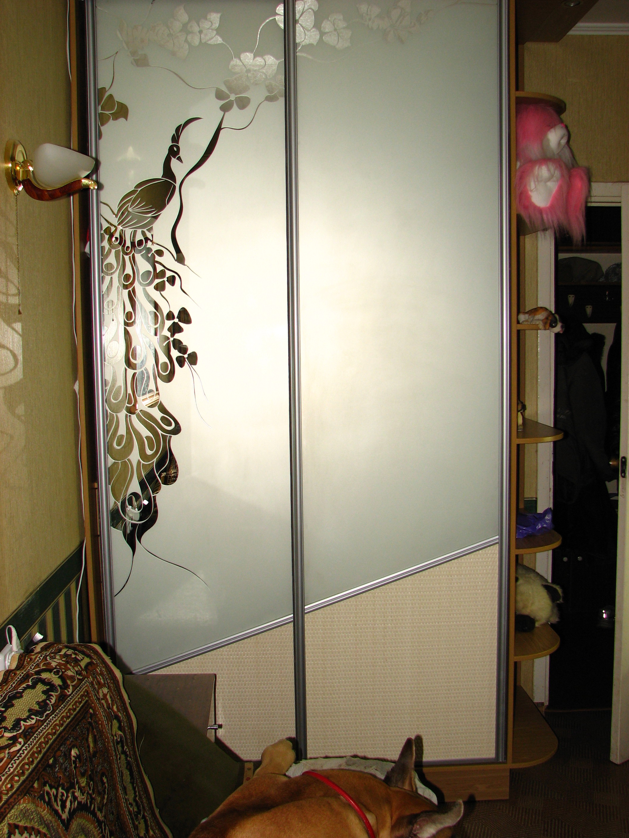 Шкаф-купе: раздвижная система "Браун", зеркало матированное рисунок "Жар-птица",ратанг.бежевый