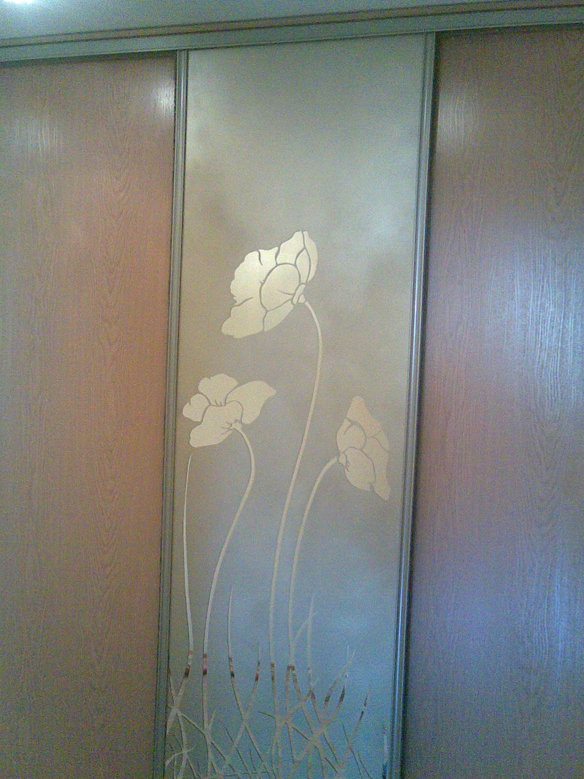 Дсп ольха,Раздвижная система "Командор-Люкс", зеркало матированное золото,рисунок "Маки".