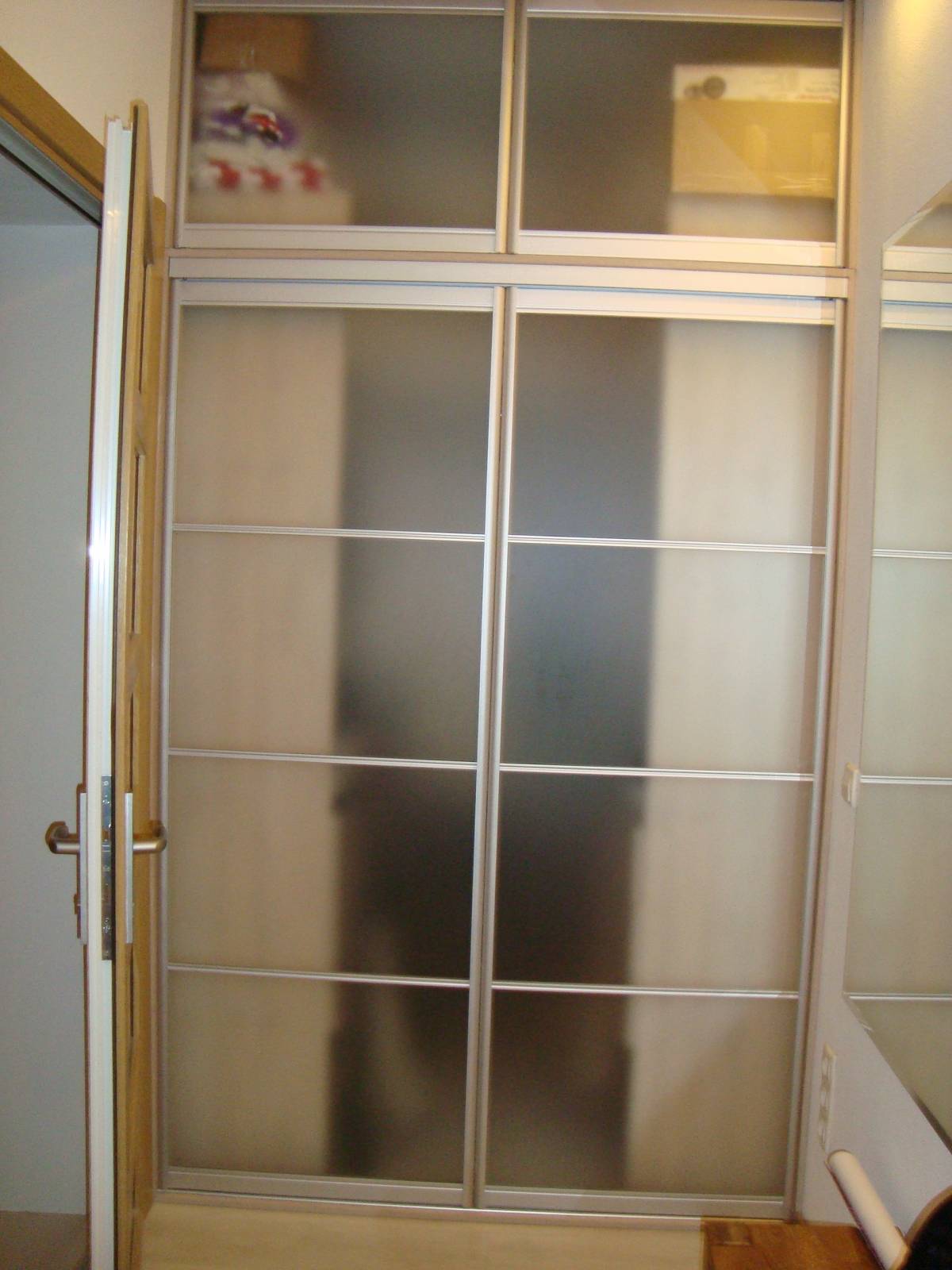 Шкаф-купе фасад стекло сатин.Фасад алюмин.система -"гармошка"