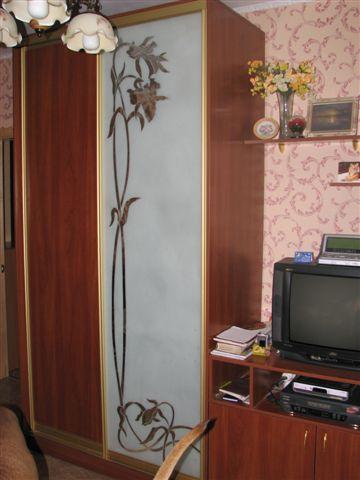 Шкаф-купе элемент стенки,дсп яблоня,фаса зеркало матированное рис."Лилия",раздвижная система "Браун"-золотое покытие ...