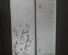 Перегородка между кухне и залом-легкая,ненагружающая.Алюминиевая раздвижная система,секло прозрачное+матировка+двусторонняя печать.Рисунок виден с обеих сторон.Раздвижная система"Бридж"-двусторонняя.Вид из кухни без освещения